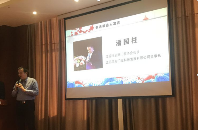 ? ? ? 連云港市門窗協(xié)會黨支部書記、會長、江蘇美好門業(yè)科技發(fā)展有限公司董事長潘國柱,當選第三屆全國建筑門窗行業(yè)協(xié)會戰(zhàn)略聯(lián)盟主席并發(fā)表就職致辭。