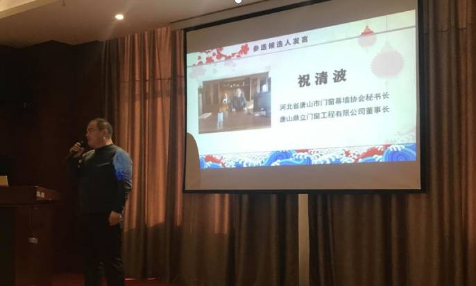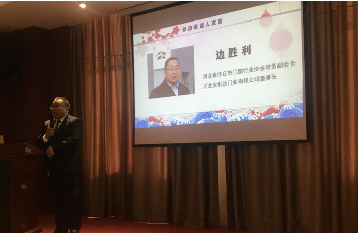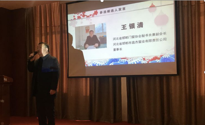第三屆全國建筑門窗行業(yè)協(xié)會戰(zhàn)略聯(lián)盟候選人做自我介紹。