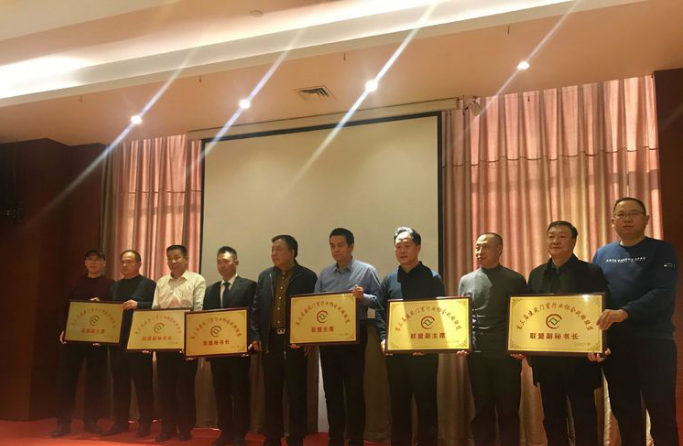 門窗聯(lián)盟新任主席潘國柱為新加入聯(lián)盟的商協(xié)會代表授牌。