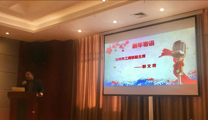 河北滄州市工商聯(lián)副主席郭文荷向與會人員致新年寄語。