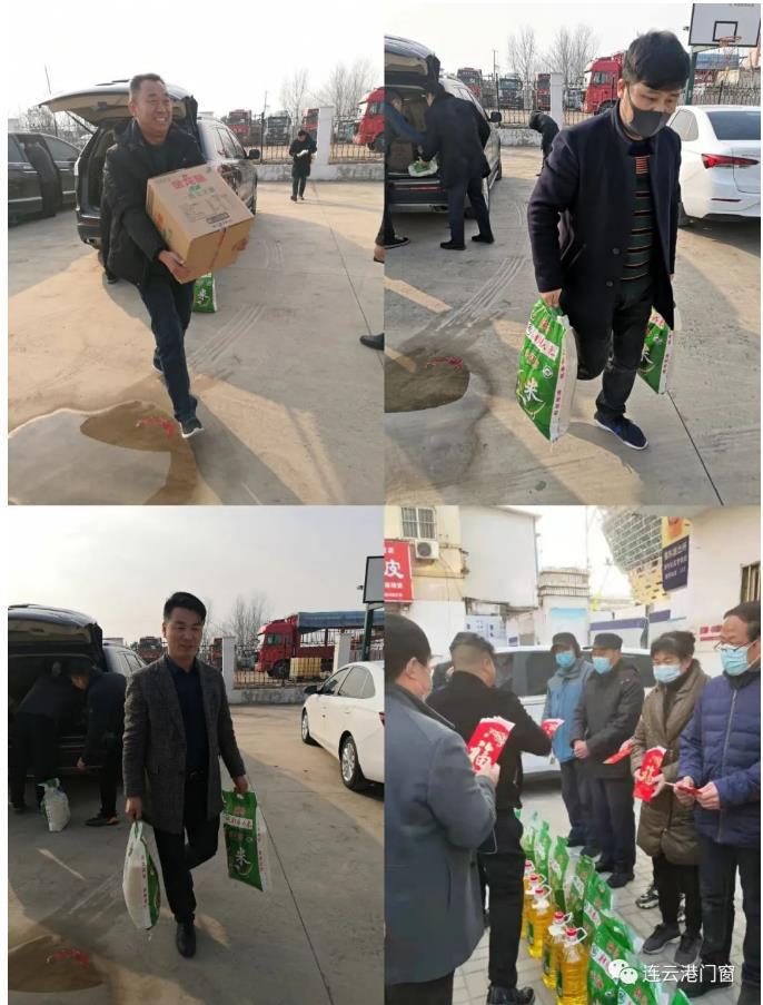 近日,連云港市門窗協會黨支部書記、會長潘國柱帶領常務副會長孫華才、陳和兒,副會長徐達、楊武、戴隆強、姚連斌、劉東磊,副書記蒯學通,監事長高德俊,秘書長胡啟楷,執行秘書長唐春和,副秘書長莊東生和常務理事耿華、劉祥強、劉云秋等愛心會員,先后走訪了海州區“新浦街道菜市社區”和“錦屏鎮李圩村”,為二十多戶困難群眾送年貨、送現金、送去新年的祝福和問候,讓困難群眾感受社會大家庭的溫暖。